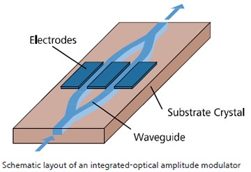 电光调制器的基本结构从铌酸锂制成的晶片开始。嵌入晶片中的是用于引导光通过调制器的波导管。至少两个电极被放置在靠近波导的晶片的顶表面上。这些电极用于通过利用Pockels效应来调制信号。简单地说,Pockels效应是指施加在晶体上的电场导致折射率发生变化。通过改变晶体的折射率,穿过波导的光改变了用于调制信号的相位。