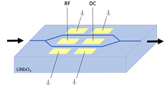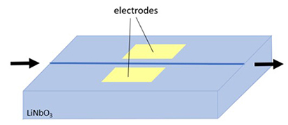 相位调制器由位于铌酸锂中的单个波导组成,波导两侧各有两个电极(下图)。这是最简单的调制器类型。