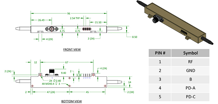 STOL-IM-850-20-PM 850 20 20 5.5@10GHz -45 V female 87 x 14.5 x 10