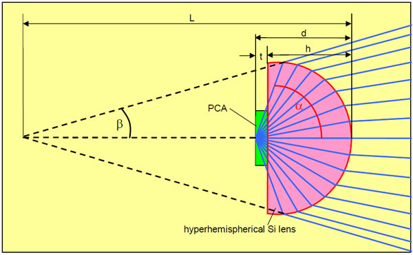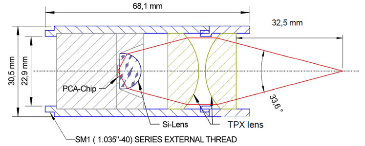 • 直径为1英寸的TPX透镜可以很容易地安装到PCA上,带有超半球硅透镜。