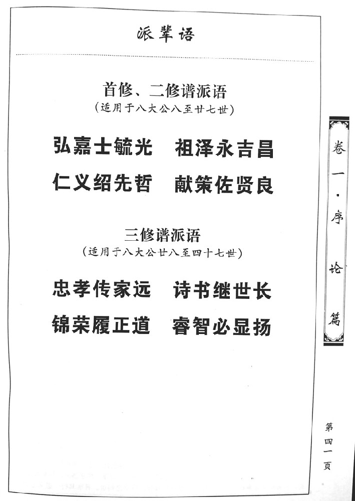 湖北荆州以恭系陈氏宗谱首修谱是1735年(雍正十三年),已经看不到原谱了。二修谱是1808年(嘉庆十三年),现存孤本。三修谱是2002年在二修谱基础上,结合于1999年8月发现的立于1847年陈公国俊之131字墓碑,并走村访户调研普查后完成的,印刷600册。