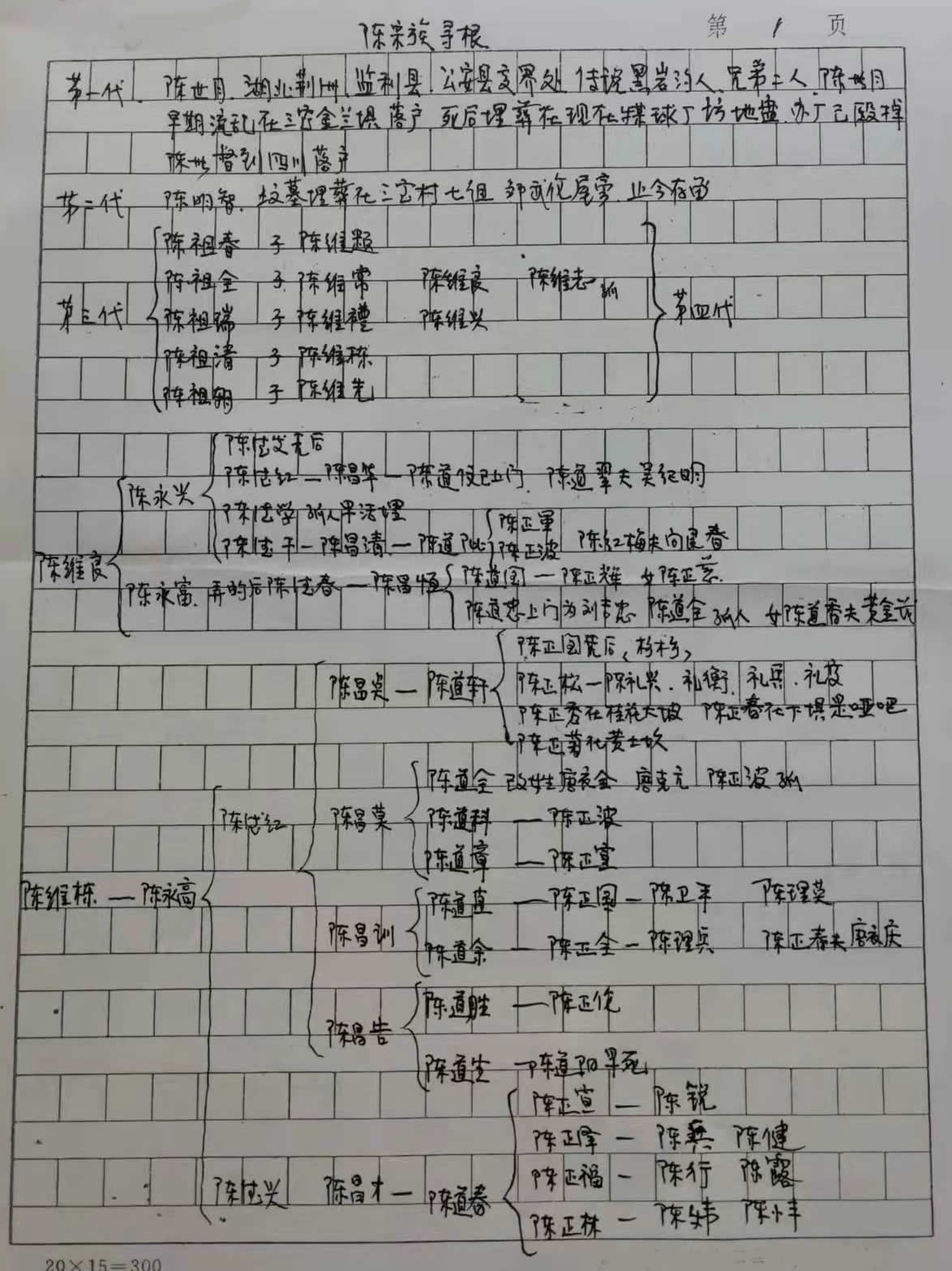 据建始三宝现存先祖碑记(陈母刘太君,即陈维题配偶,1788—1856)推算(世—明—祖—维),始祖世月约生于1700年左右。另据自东向西、从中心到边缘、从大道到两厢的入川路径,以及先来后到、插占为记、先占先得的规矩,始祖世月应为离荆入川的先行者。落户地距县城直线距离仅8km,姓氏高度分化,错综复杂,口传几乎全部来自荆州,罕见麻城、湖南、广东移民,可见当时土地已经非常紧张。世月弟世督挥泪离别,继续前行。
