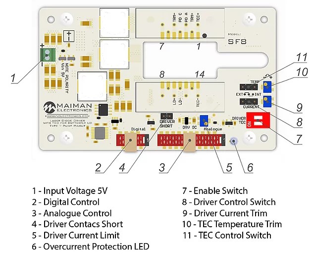 峰值功率也是可以编程的。脉冲宽度和峰值功率编程由主板电位器或外部模拟电压控制完成。监视器信号显示激光平均电流。该模块设计用于集成在实际系统中已运行多年。