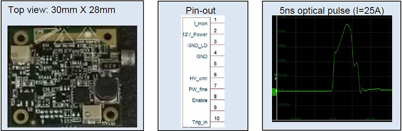 激光峰值电流 | 2A (@PW=3ns) | 24V; 可根据要求增加 |